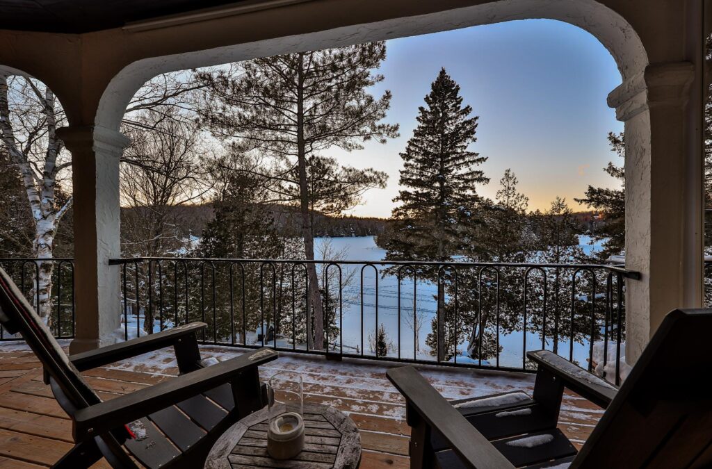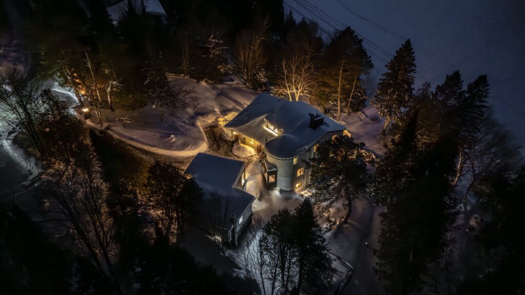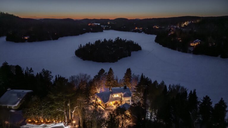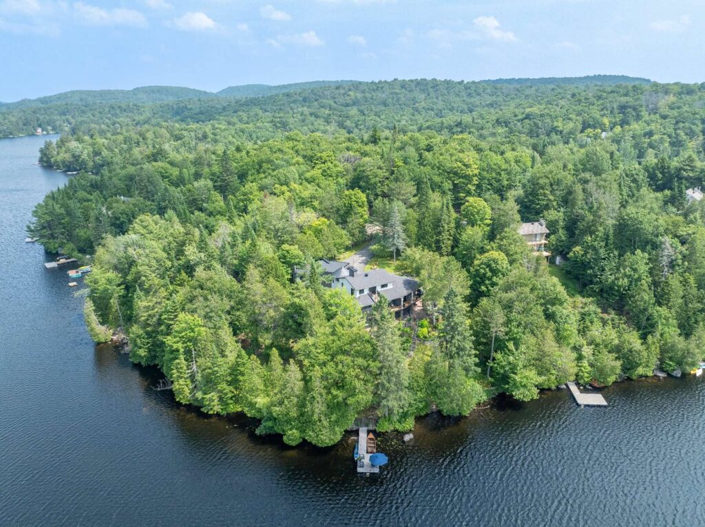Cette propriété se trouve à 1h15 de Montréal. Elle est située sur une péninsule en bordure du magnifique lac Notre-Dame (non navigable) dans la région des Laurentides. Elle bénéficie d'un frontage de 77 mètres sur le lac, vous assurant une grande intimité, tout en vous donnant l'impression d'être en pleine nature. Sa vue panoramique ainsi que son orientation sud-ouest confèrent une grande luminosité à la propriété et offrent de superbes couchers de soleil durant toute l'année.