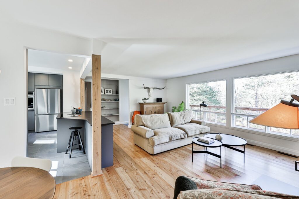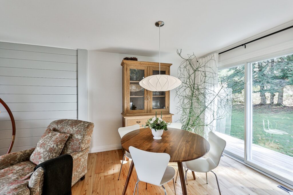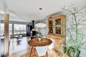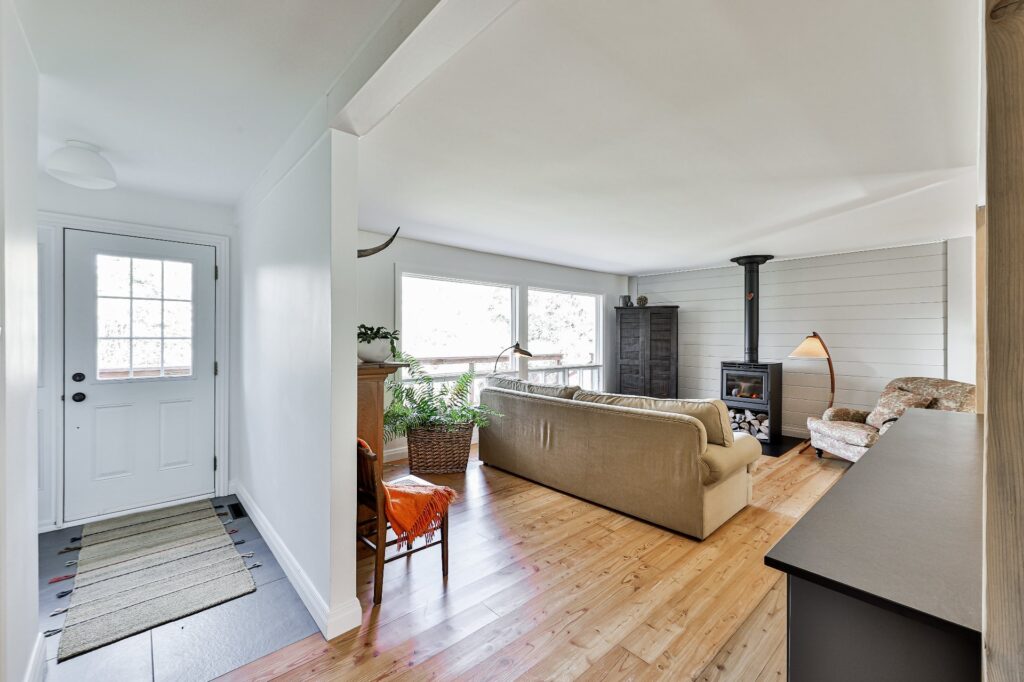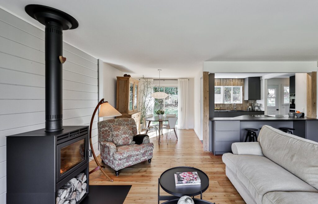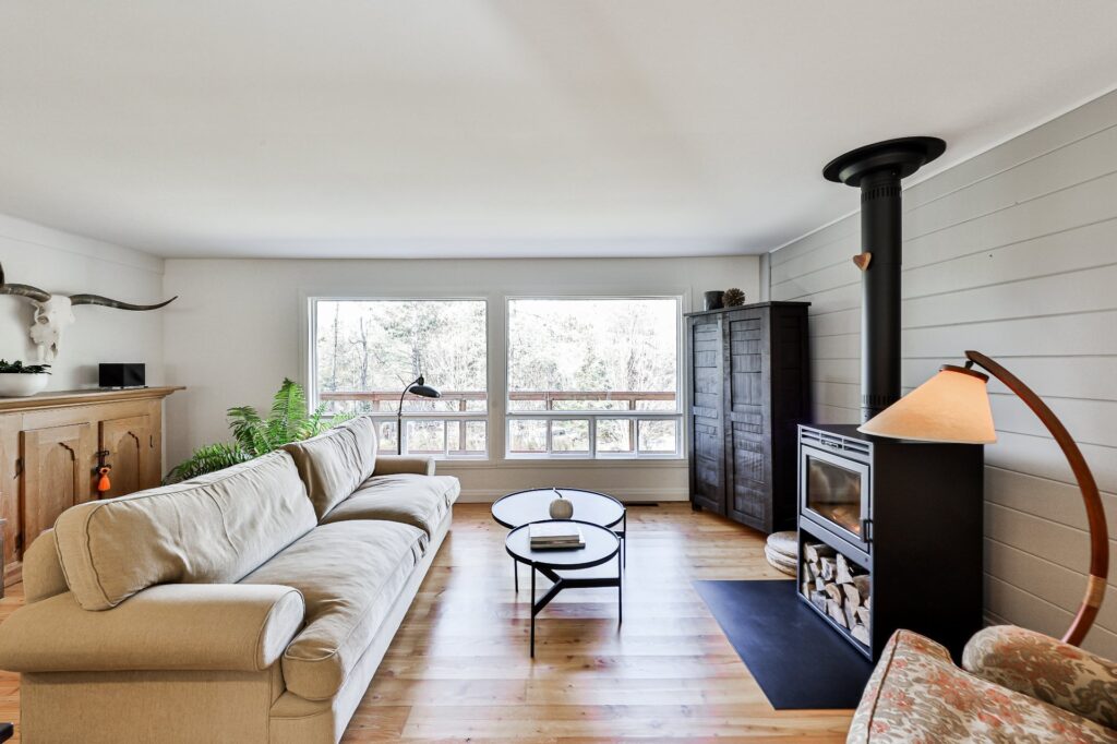 À l'intérieur, une ambiance accueillante vous enveloppe grâce aux superbes planchers de bois et au foyer à combustion lente, parfait pour des soirées confortables.