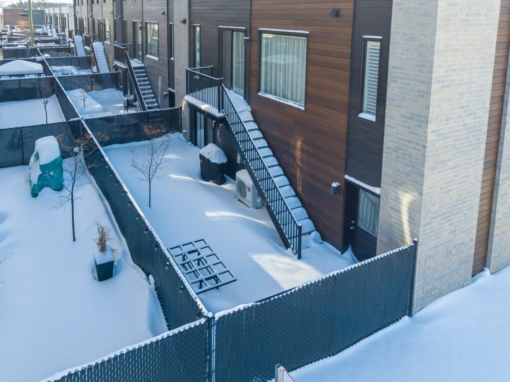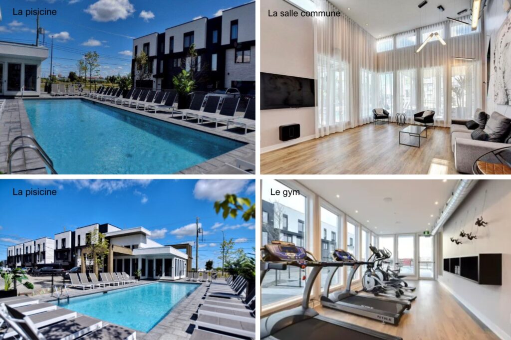 Entretien paysager et déneigement inclus, de même que l'accès au gym, à la salle commune et à la piscine.