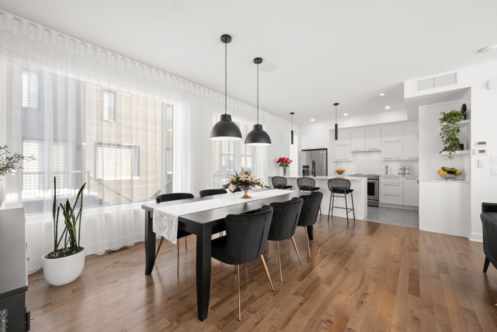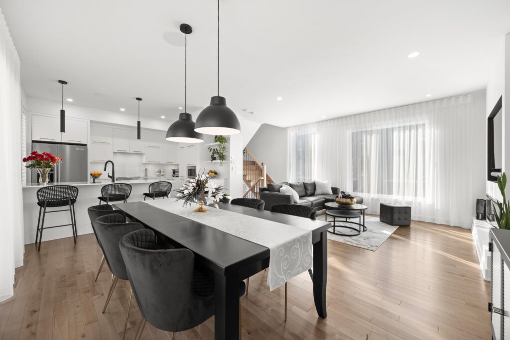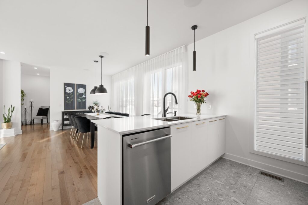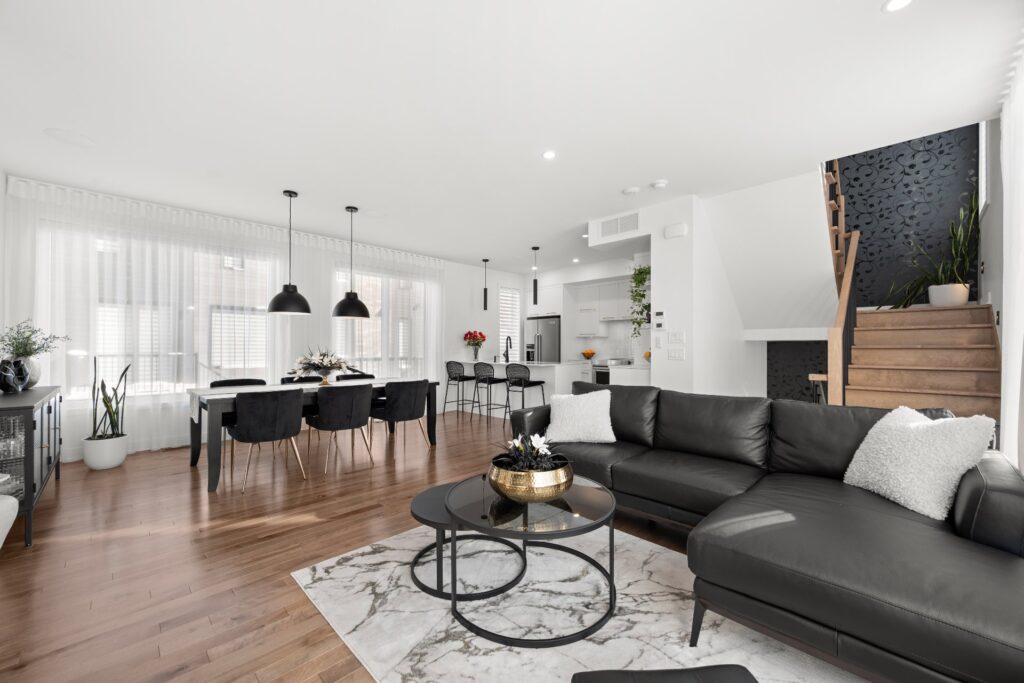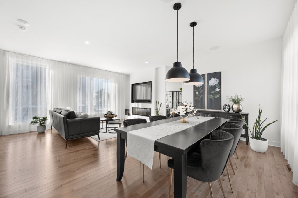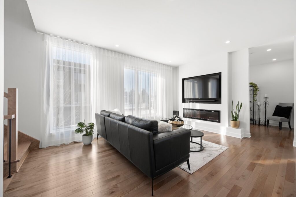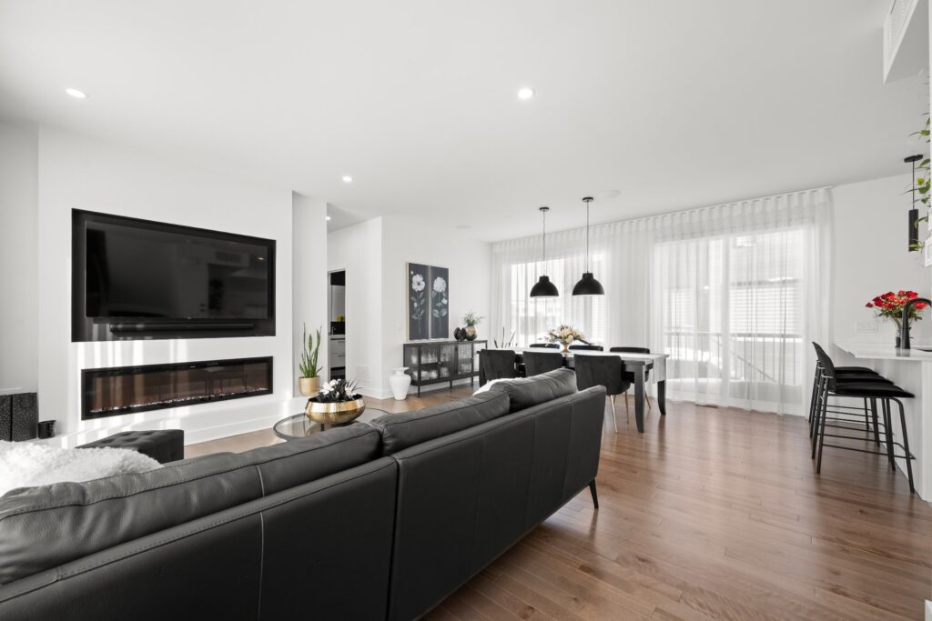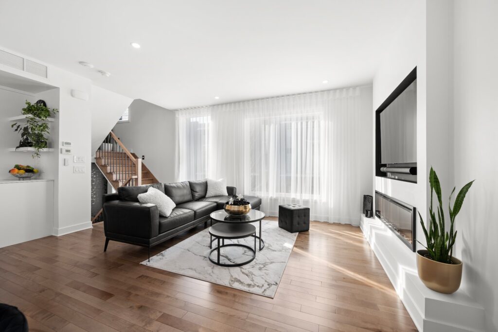 La résidence propose de superbes aires de vie à aire ouverte réparties sur trois niveaux, mises en valeur par des planchers de bois et des matériaux de qualité soigneusement sélectionnés lors de la construction.