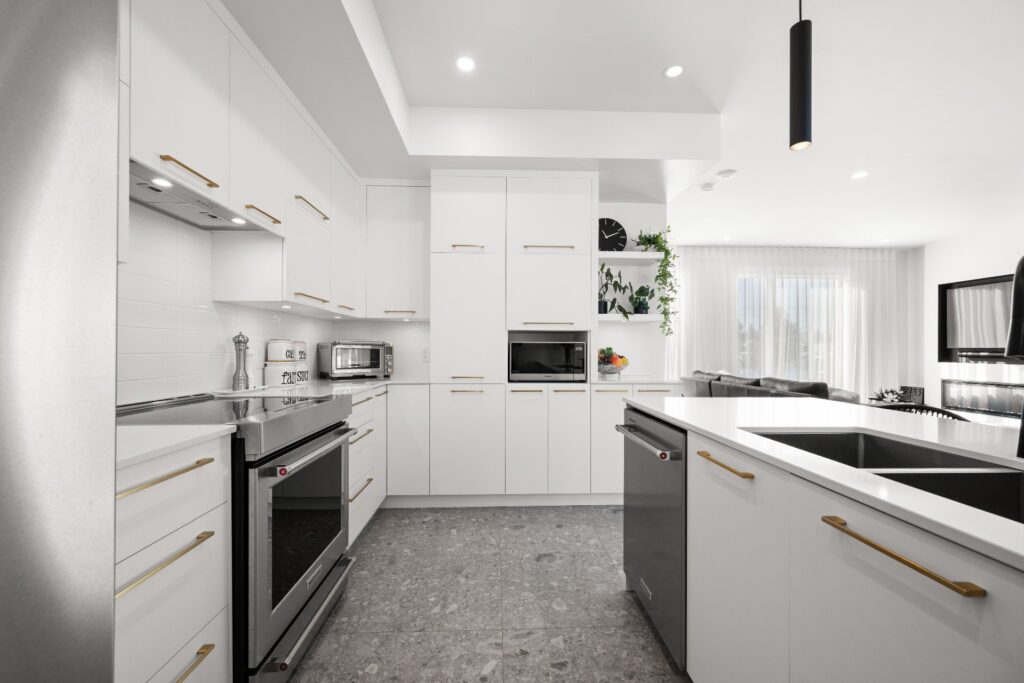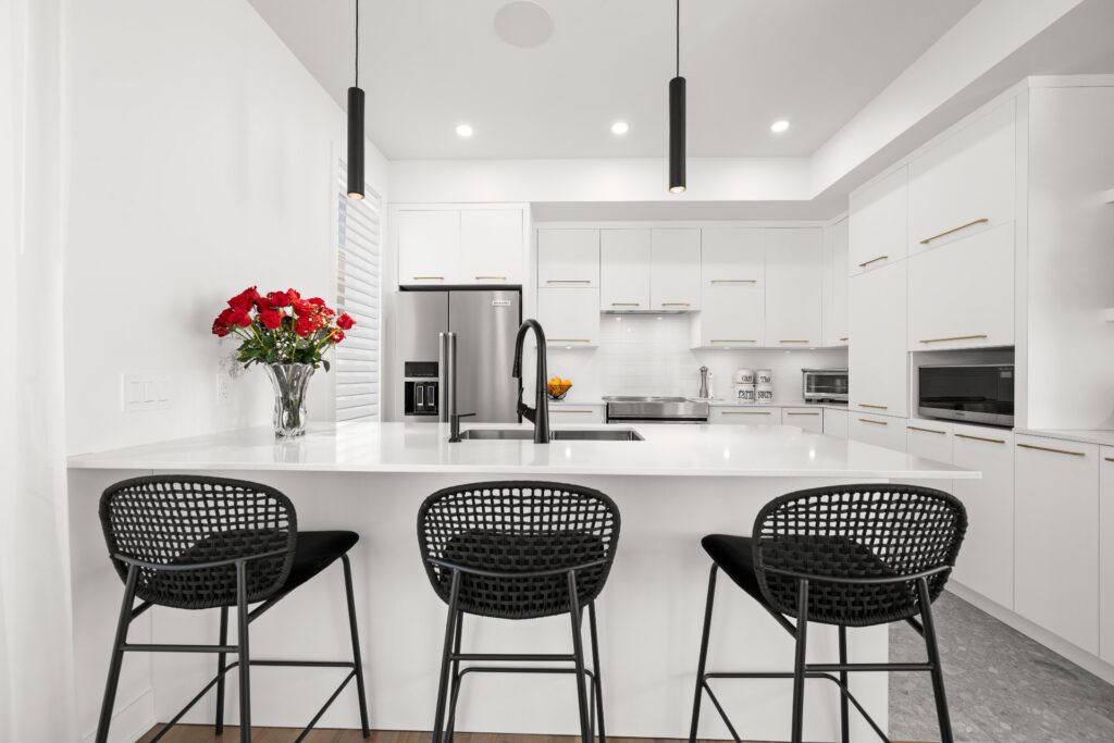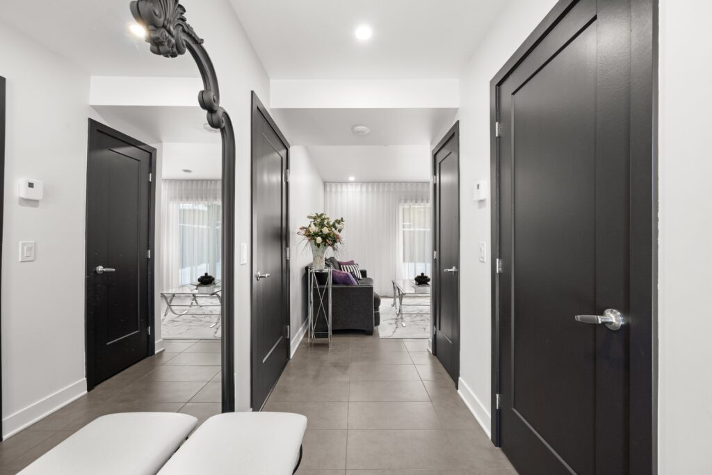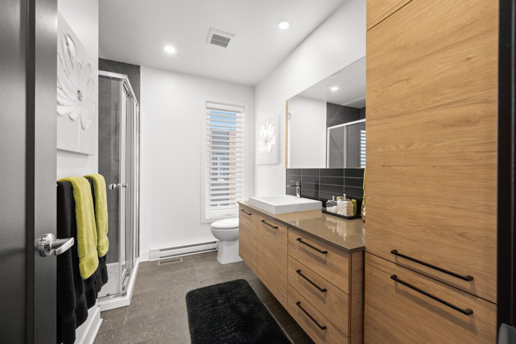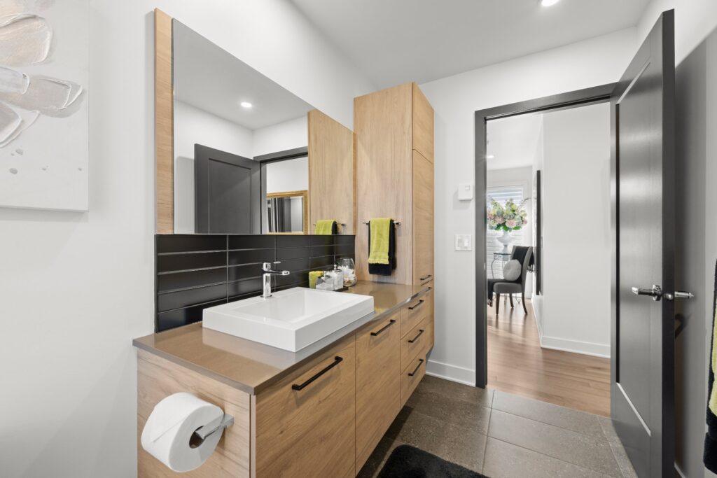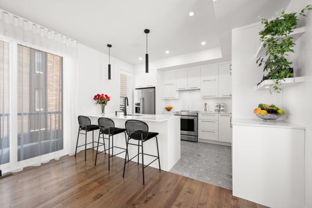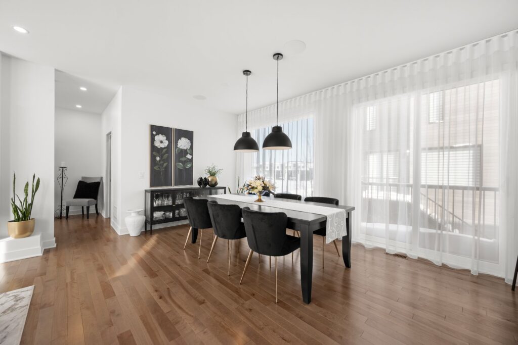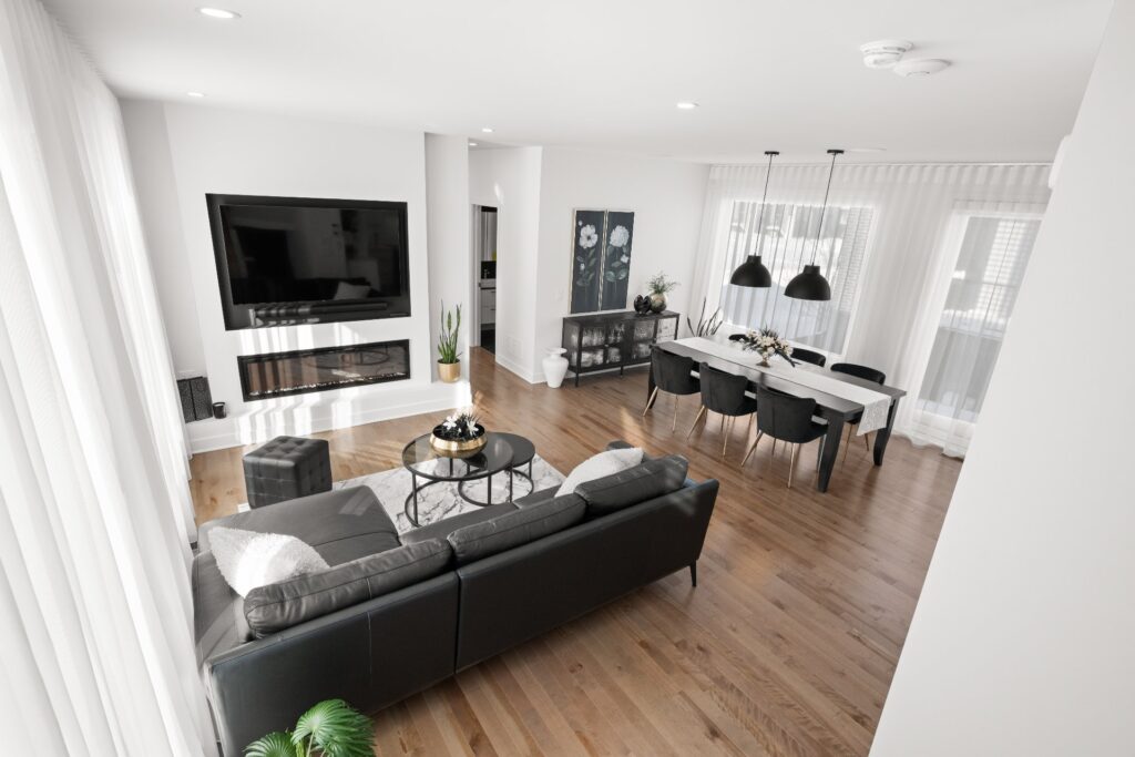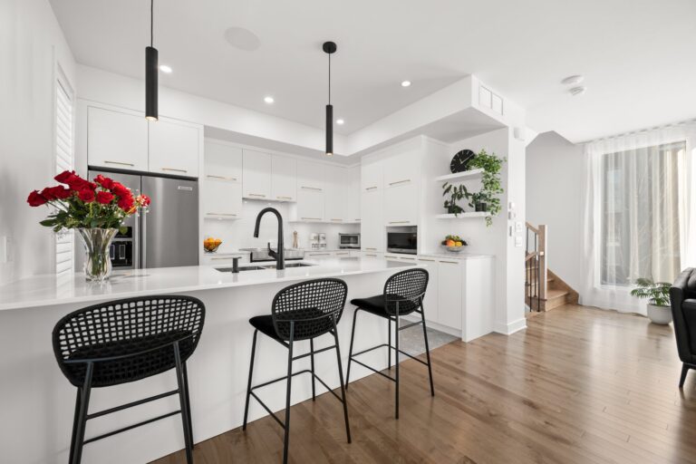 La résidence propose de superbes aires de vie à aire ouverte réparties sur trois niveaux, mises en valeur par des planchers de bois et des matériaux de qualité soigneusement sélectionnés lors de la construction.