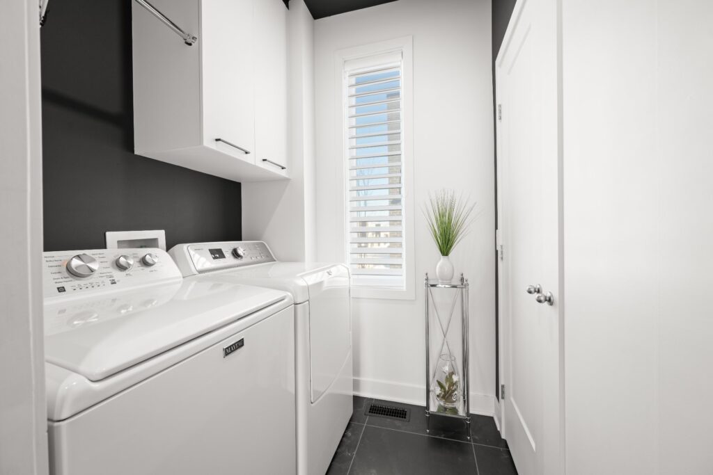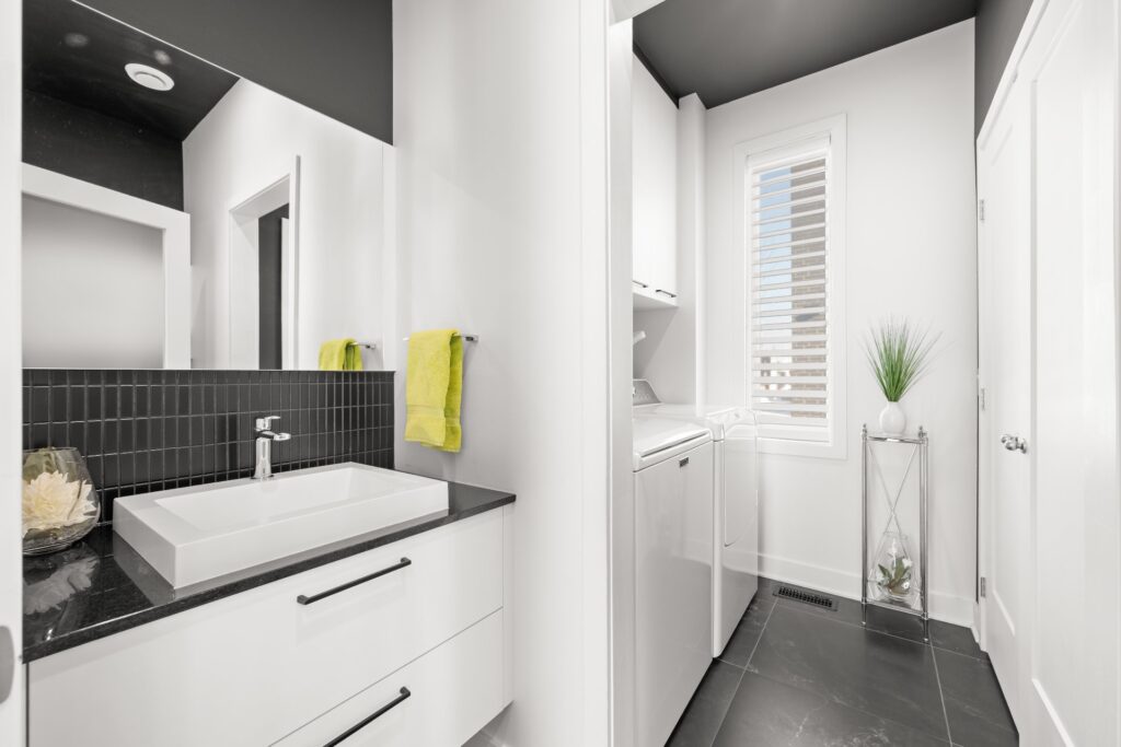 Au deuxième étage, on retrouve la cuisine moderne avec îlot central, s'intégrant harmonieusement au salon, ainsi qu'une salle d'eau avec espace laveuse-sécheuse et un espace bureau idéal pour le télétravail.