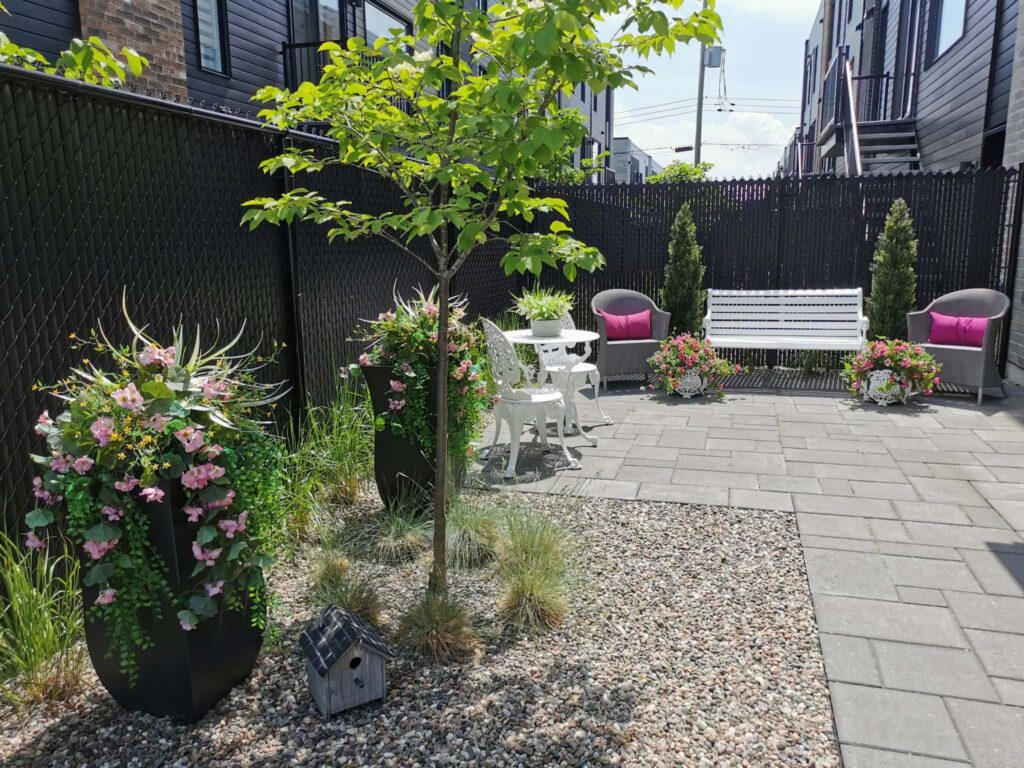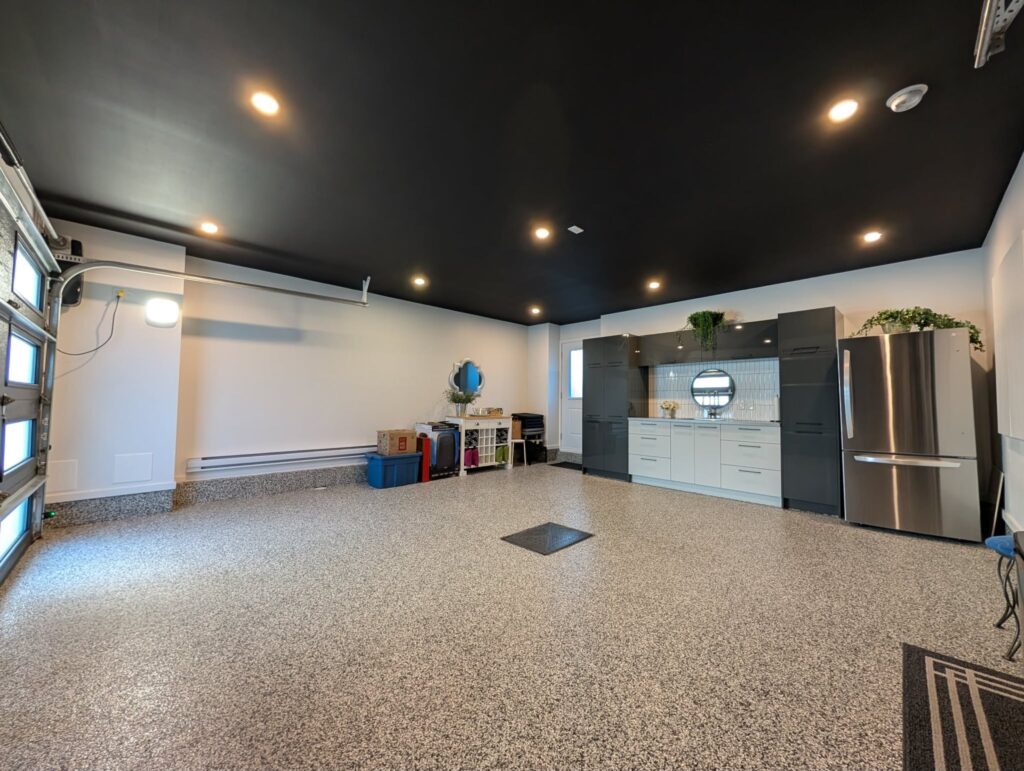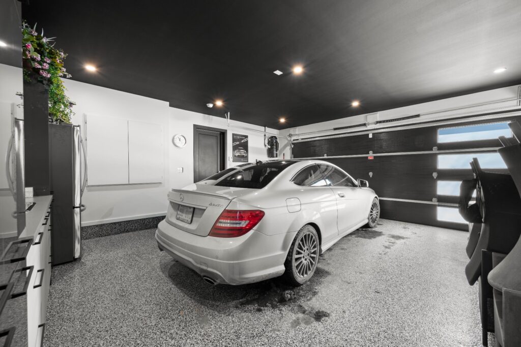 Cour arrière intime et clôturée, garage double chauffé avec plancher en époxy et abondant espace de rangement, avec accès direct à la cour.