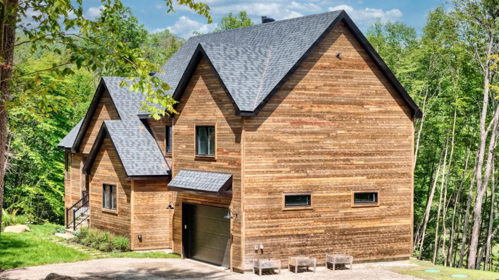 Maison d'exception -- Construction 2025. Une véritable oasis où confort, élégance et nature cohabitent en parfaite symbiose. Alliant modernité et charme rustique, cette résidence en cèdre nichée sur un terrain de 3,5 acres vous offre un véritable havre de paix, en parfaite harmonie avec la nature. Entourée d'arbres matures, elle propose une intimité absolue et une ambiance sereine. Les amoureux de la nature et des oiseaux seront comblés par la vue imprenable et la richesse de la faune environnante.