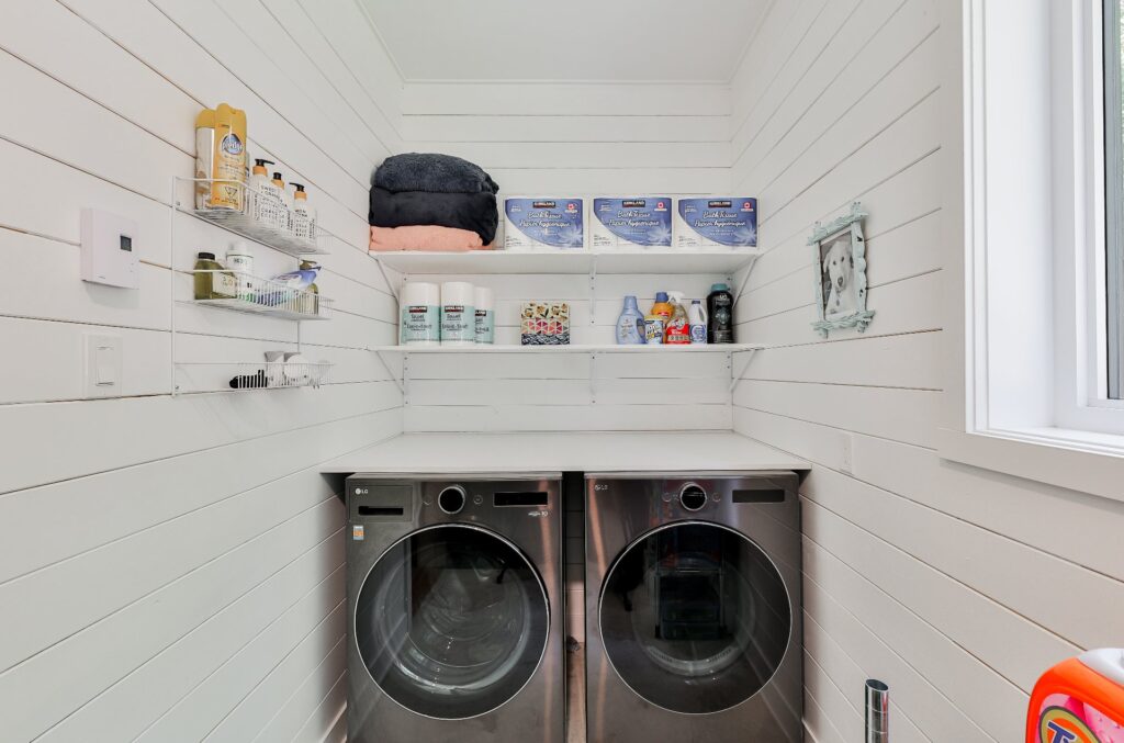 Le garage double avec rangement ainsi que la salle d'eau se trouvent au le rez-de-chaussée. À noter, des planchers sont chauffants au glycol partout.