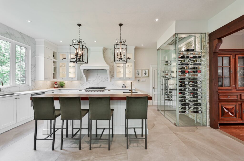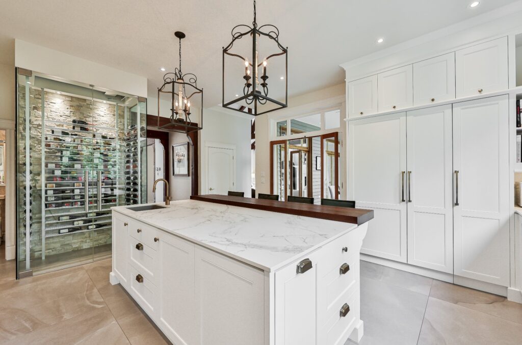 Un meuble vaisselier dans la salle à manger, un réfrigérateur de marque SubZero, deux lave-vaisselle de marque Fisher & Parkel, la cuisinière au propane de marque Wolf, les deux ensembles de laveuse-sécheuse, les habillages de fenêtres, le miroir dans la salle à manger, tous les luminaires, y compris les deux lustres en cristal dans la chambre principale, ainsi que tous les tabourets du comptoir de cuisine.