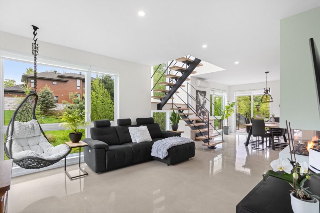 Salon 15.7x13.5 pieds Béton