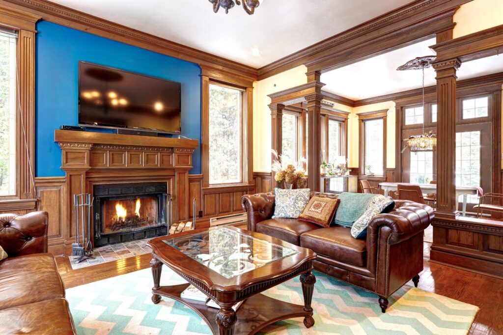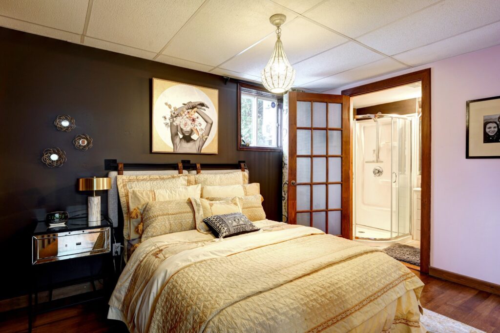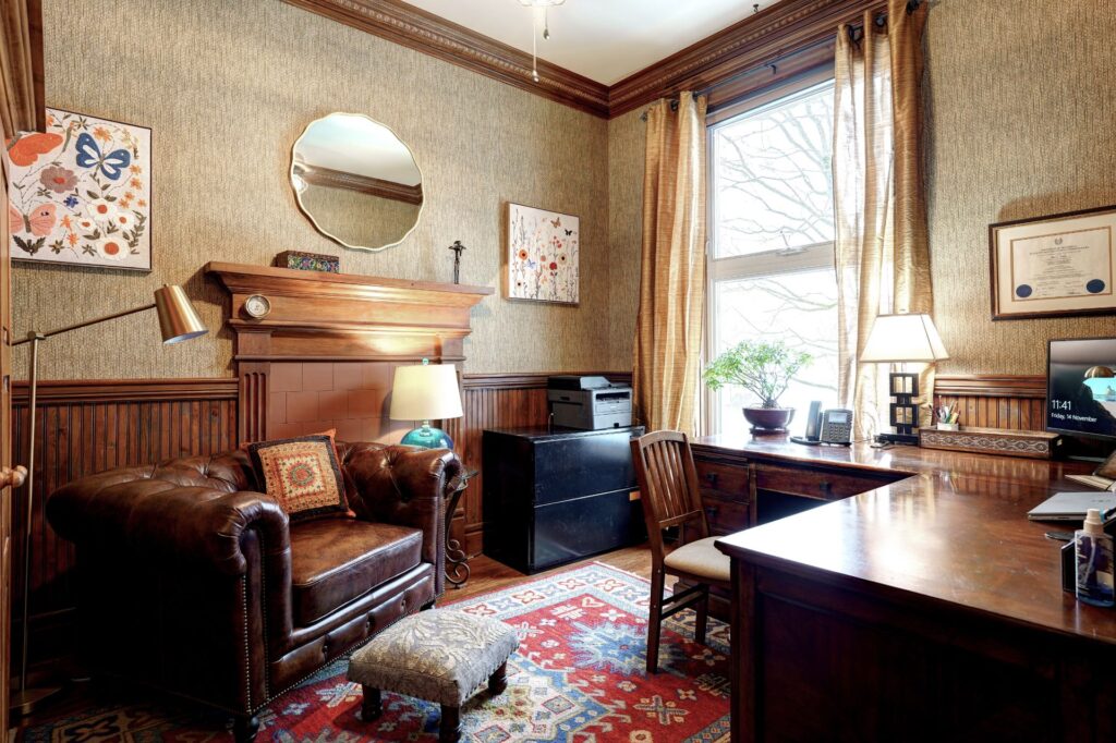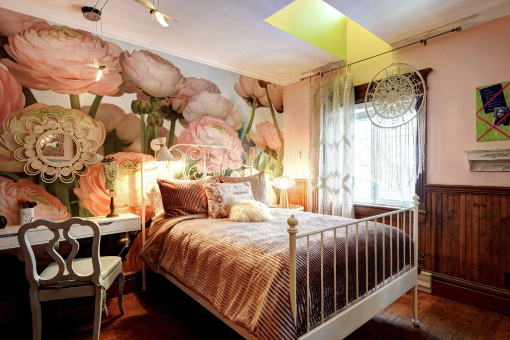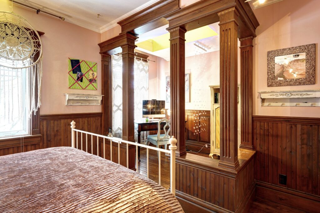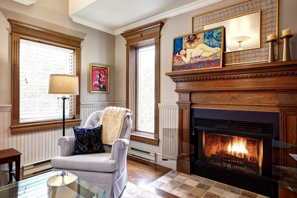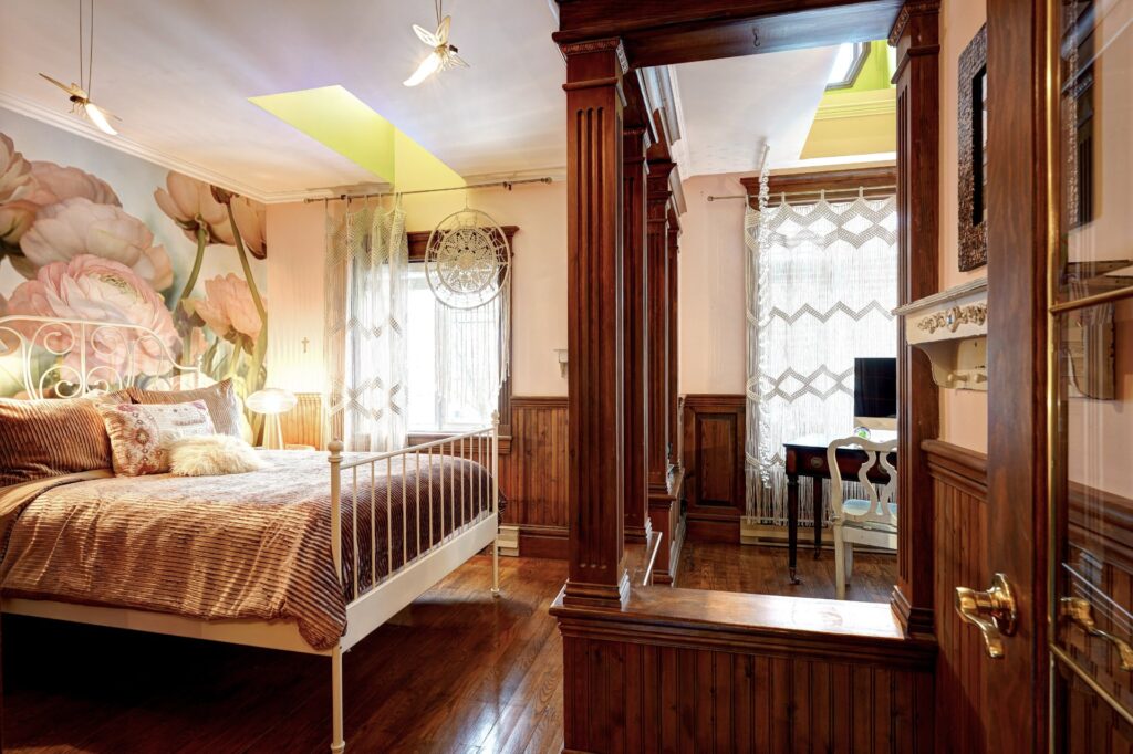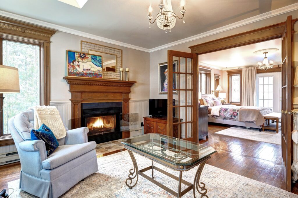 Deuxième chambre à coucher adjacente avec un deuxième foyer au bois