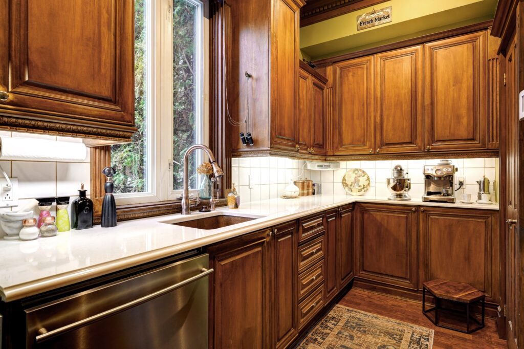 Cuisine fonctionnelle légèrement en retrait adjacente à la salle à manger