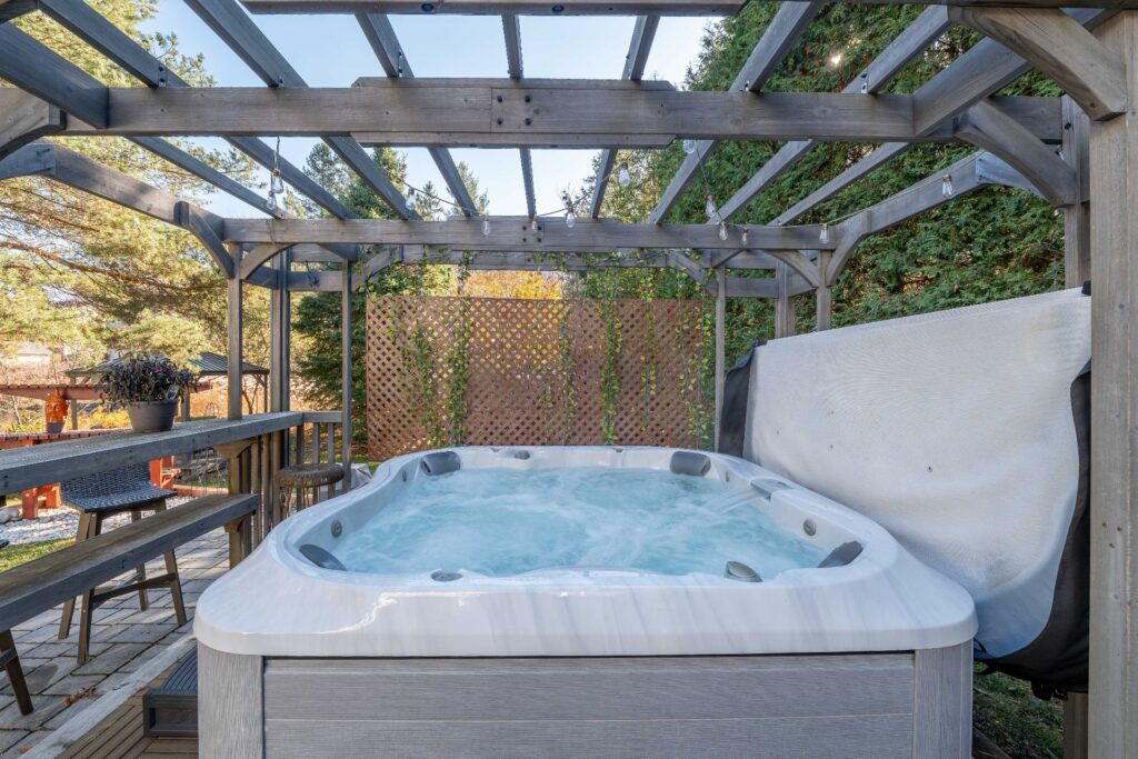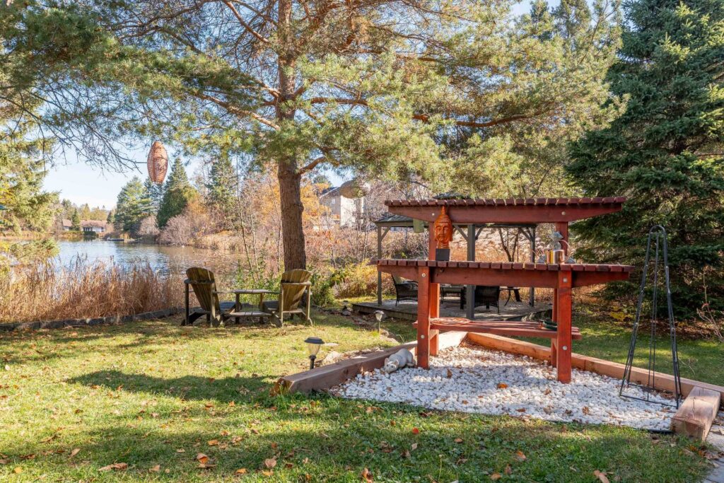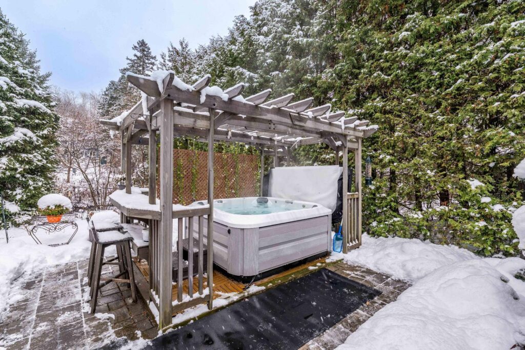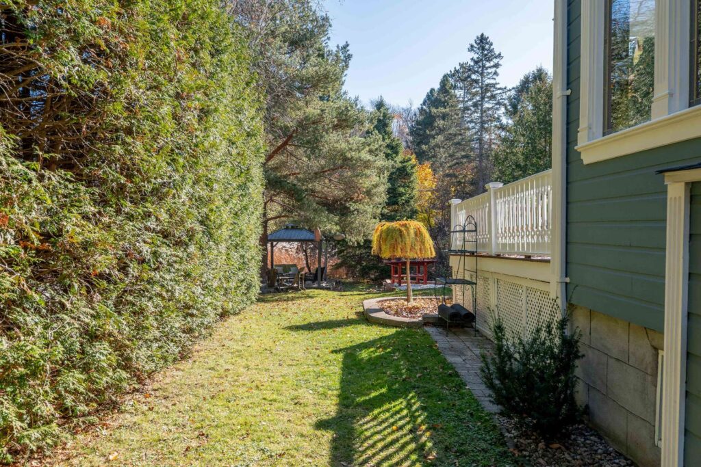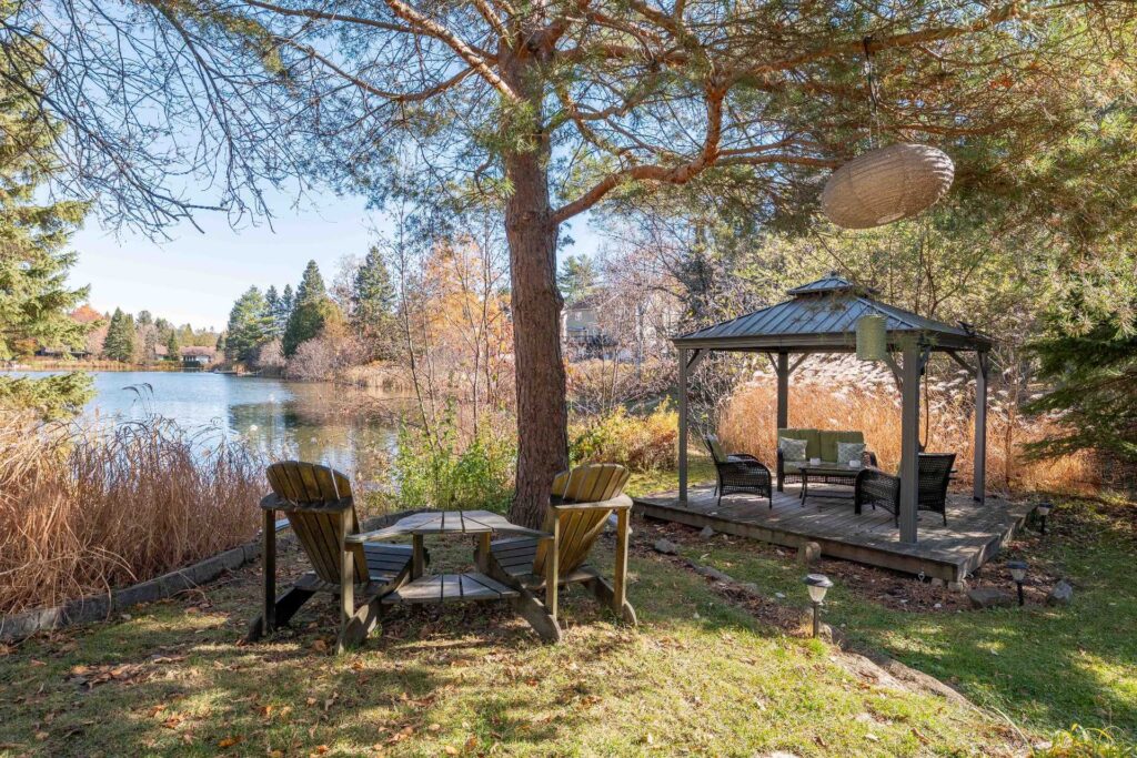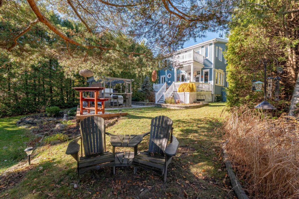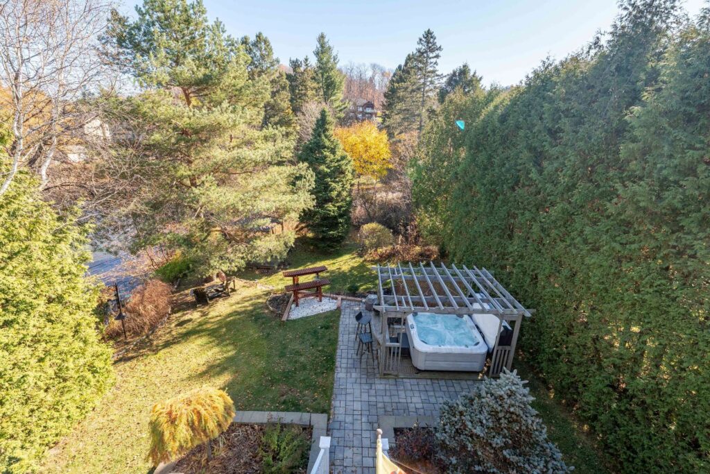 Sur son terrain soigneusement aménagé de 7 682 pi², vous profiterez d'une atmosphère paisible et d'une belle intimité. La cour arrière, agrémentée d'un spa et d'un gazebo, vous invite à la détente au fil des saisons. En prime, un bord de lac privé ainsi qu'une vue sur les montagnes de ski -- un décor à couper le souffle, été comme hiver. Une rareté au coeur du village.